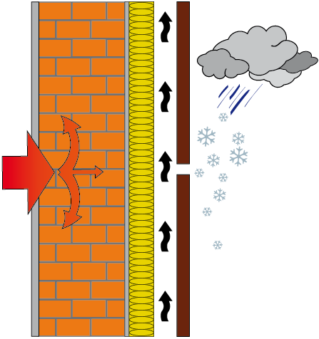 La lame d’air contient des ouvertures dans la partie supérieure et en pied de façade, permettant la circulation constante de l’air.